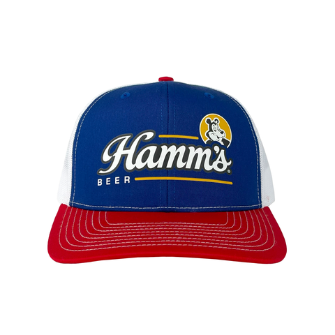 The Bear in Sun Hat is a snapback, 6-panel hat, made from premium materials, and has a cotton sweatband for all-day comfort. Features a transfer print of the Hamm's logo.